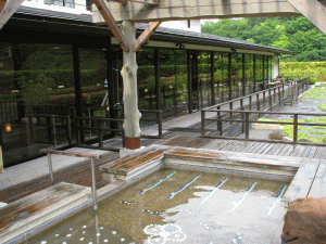 ホテルおかだに着いて、部屋に荷物を置いて、すぐに足湯に行きました。足湯は、露天風呂付客室から、すぐのところにあるのですよね。