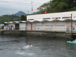 先ほどの無料休憩所とアザラシとイルカがいたイケスが見えました。