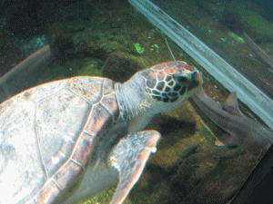 ギンガメアジ、ウミガメ、サメがいる水槽もありました。