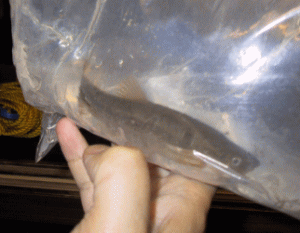 ようやく釣れたと思ったら、ニジマスじゃない川魚……。